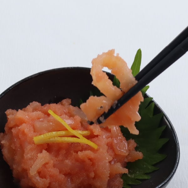 | 原材料 | あおりいか(インド又はスリランカ産)、助宗鱈の卵巣(ロシア又はアメリカ産)、発酵調味料、食塩、清酒、砂糖、柚子、醤油、鰹風味調味料、唐辛子、昆布粉末/調味料(アミノ酸等)、還元水飴、ソルビット、酸化防止剤(ビタミンC)、ナイアシン、着色料(赤102、黄5、赤3)、酵素、発色剤(亜硝酸Na)、 |