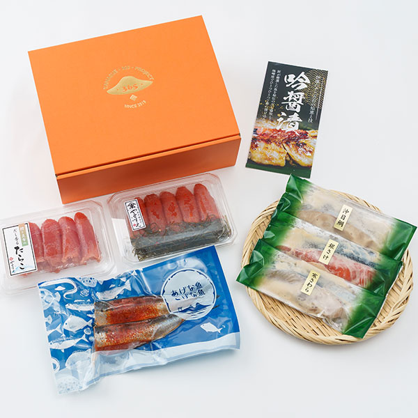 宮城県松島町の魚隆商店の吟醤漬けとやますえの明太子をセットに。